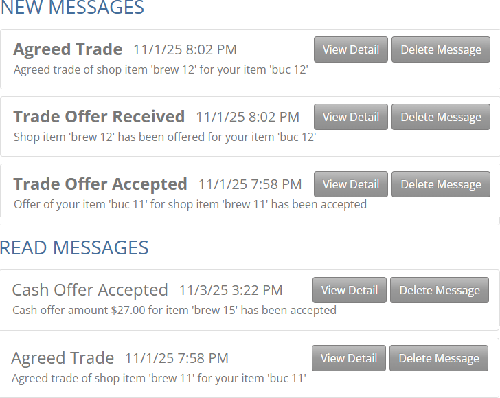 Each message has a "Delete Message" button that may be used to remove it from your list.