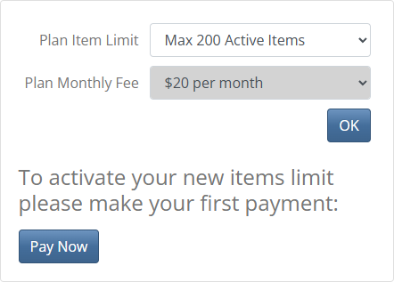 Select a Plan Item Limit. This limit determines how many active items you may have listed at any time. For example, if you have an active item limit of 100, you may enter 100 items initially and then enter another item each time you make a trade or sale.