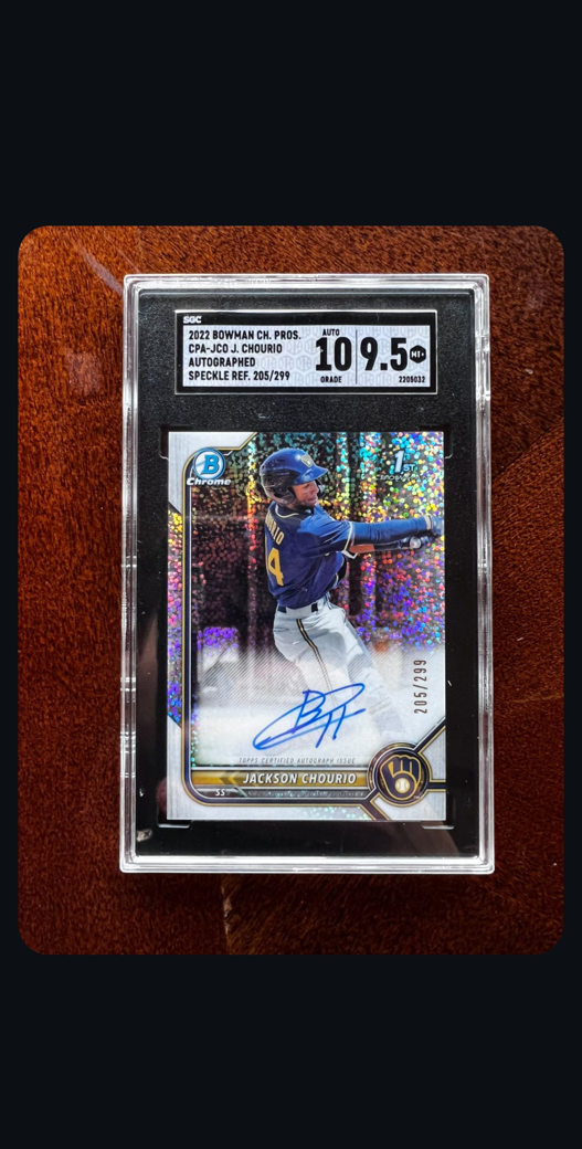 2022 Bowman Chrome 1st Bowman Jackson Chourio Speckle Refractor Auto /299